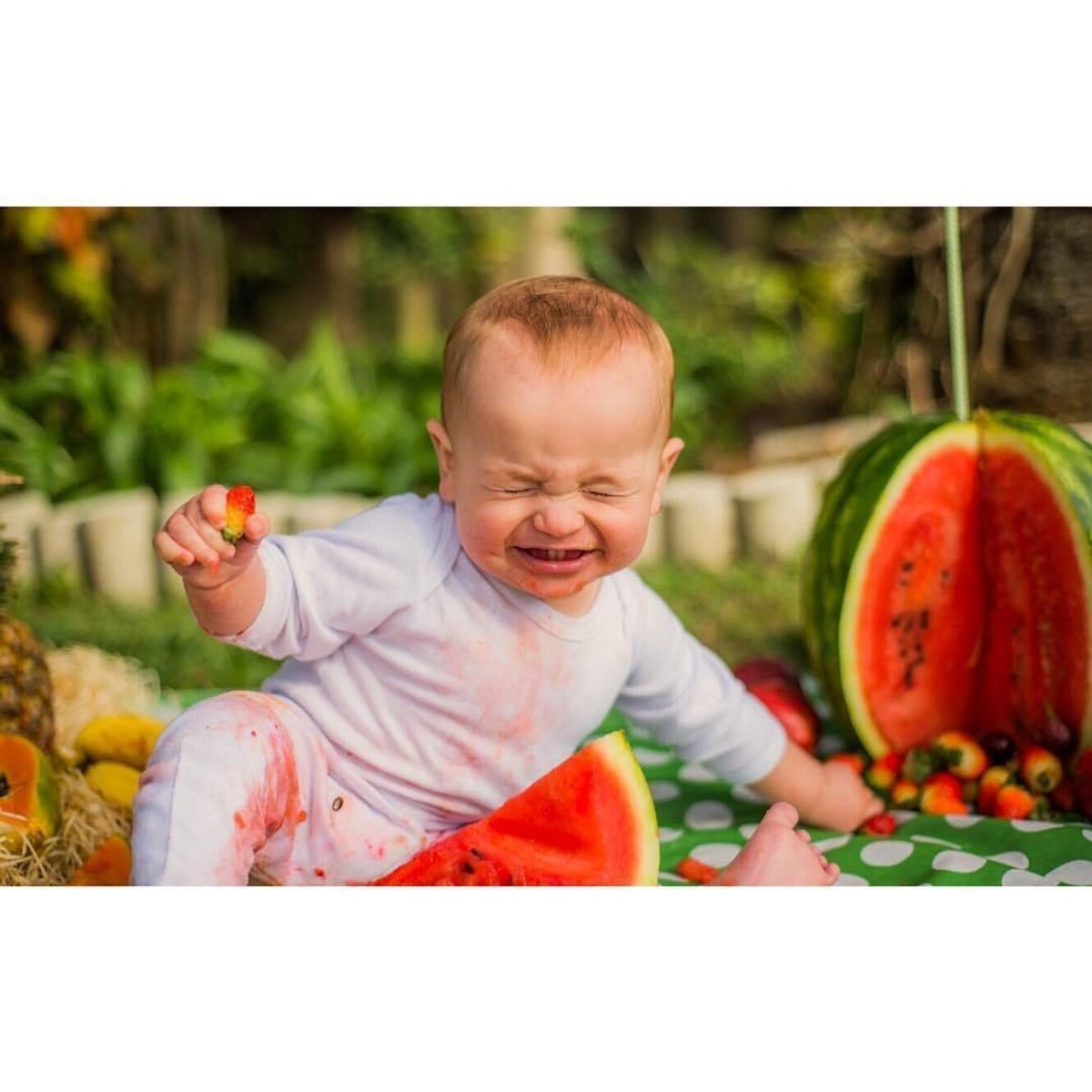 A proposta do Smash the Fruit é estimular o tato, o olfato e o paladar. O bebê poderá sentir a textura, o cheiro e o gosto das frutas, muitas vezes pela primeira vez , proporcionando caras e bocas incríveis para as fotos.