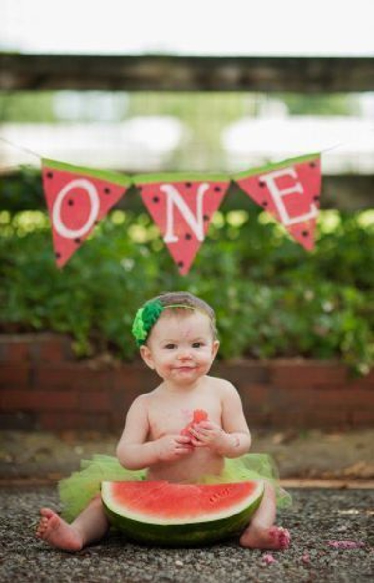 Smash the Fruit. A ideia é parecida com o já badalado Smash the Cake, mas sem o bolo decorado. Desta vez as crianças se lambuzam com um banquete de deliciosas frutas, opção mais saudável e igualmente divertida.